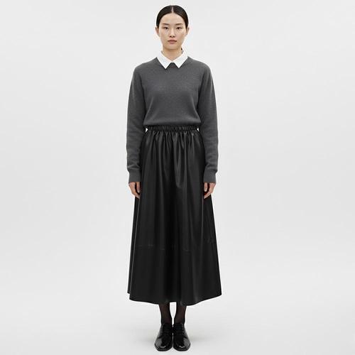 [샵앤][샵앤] 여성 허리밴딩 가죽 인조 레자 A라인 플레어 롱스커트 NTT-WSK-20813-블랙