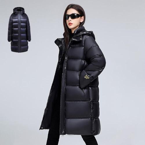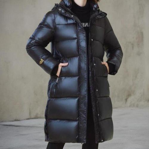 2025 두꺼운 스노우 파카 패션 방풍 광택 다운 면 후드 여성 재킷, 루즈 롱 코트, 4XL 숙녀 외투, 겨울 신상