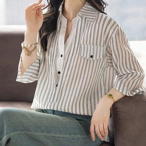 [핑크엘리제]스트라이프 셔츠 출근룩 제테야블라우스