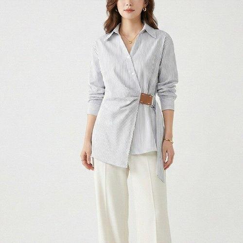 [핑크엘리제]스트라이프셔츠 랩셔츠 언발셔츠 세르니브타이셔츠