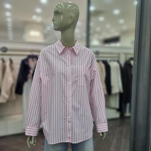[샵앤]여성 카라넥 스트라이프 베이직 루즈핏 남방 셔츠 21DS-WBL-5127-핑크