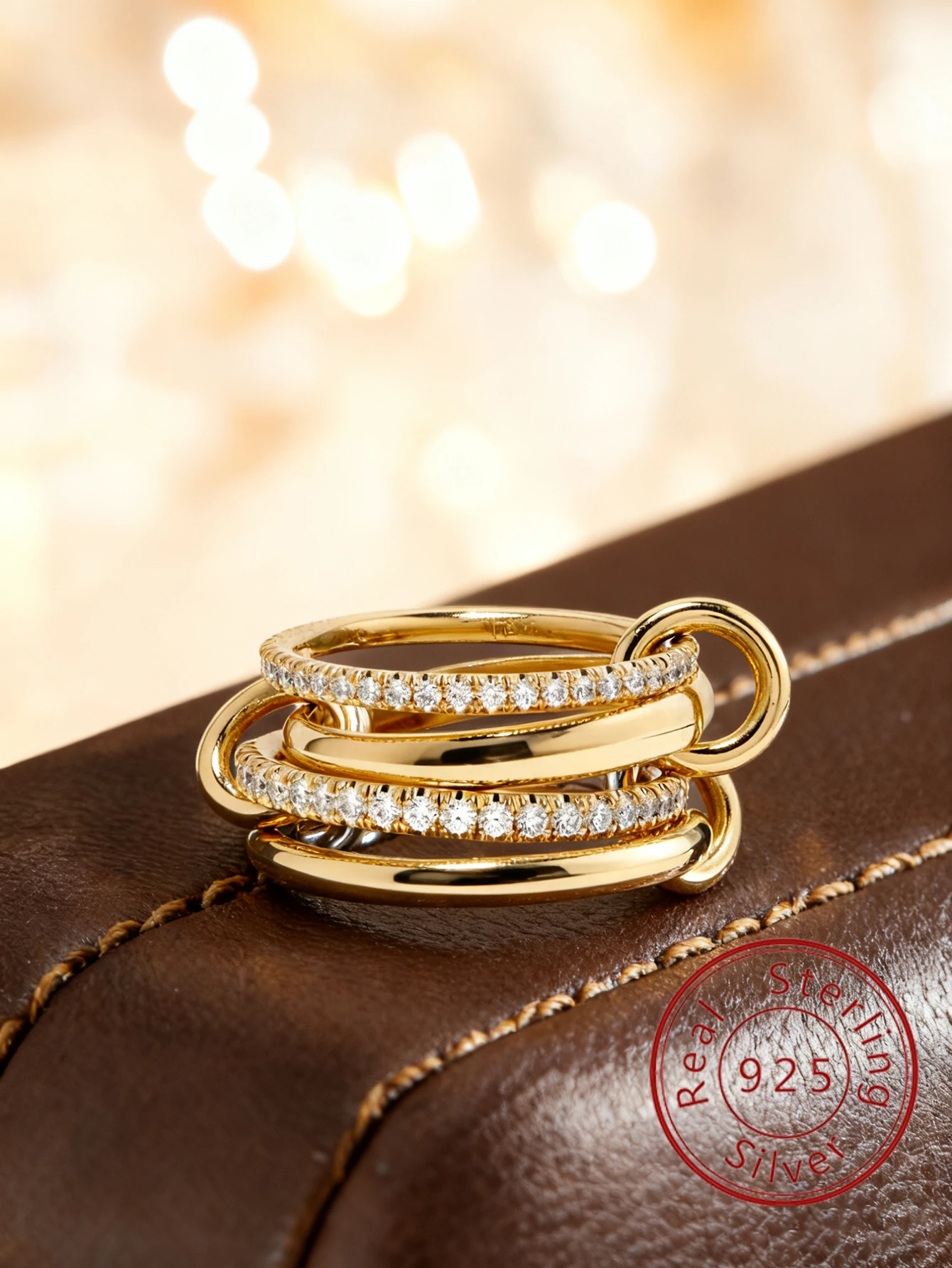 925 스털링 실버 심플 패션 멀티 레이어 라운드 지르콘 반지 여성용 기념일 일상 착용 고품질 파인 주얼리