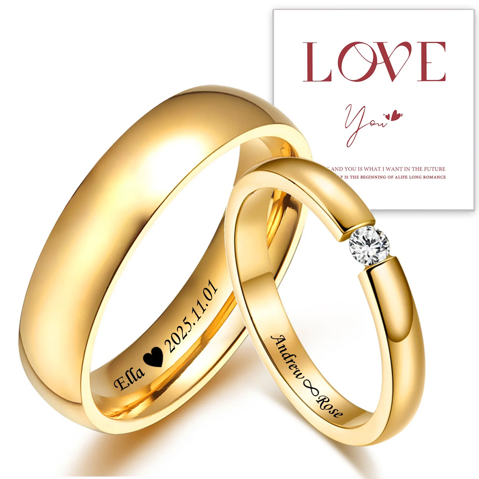 맞춤형 커플 반지 선물 카드 포함, 여성 남성 PVD 금도금 이름 사랑 웨딩 밴드, 개인 맞춤형 발렌타인데이 선물