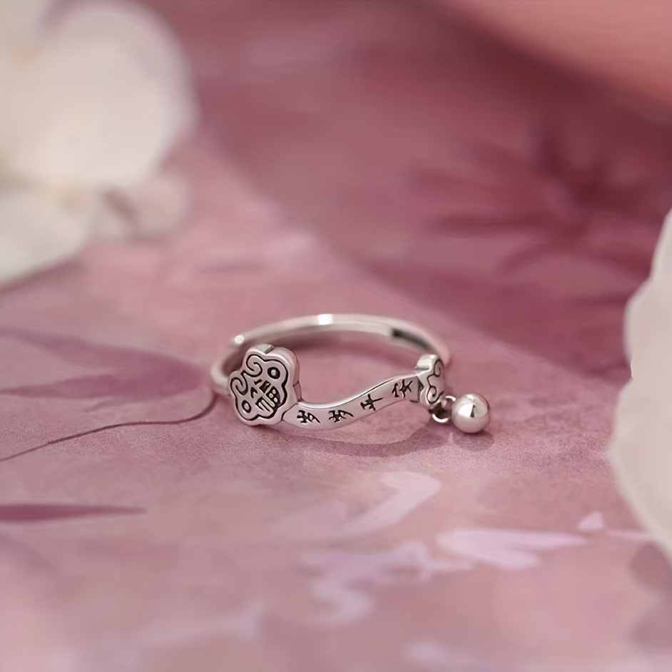 TEMU 여성을 위한 연간 평화 반지, 중국 스타일 예술적이고 창의적인 조절 가능한 반지, '복' 자 자물쇠, 데이