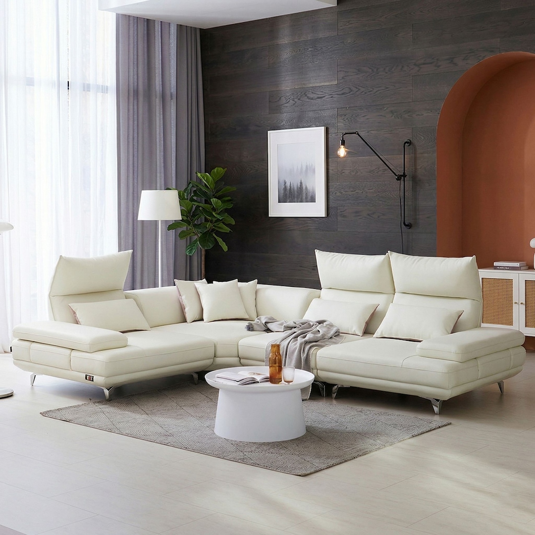 슈가드 4인 코너 무빙헤드 가죽 소파 2color