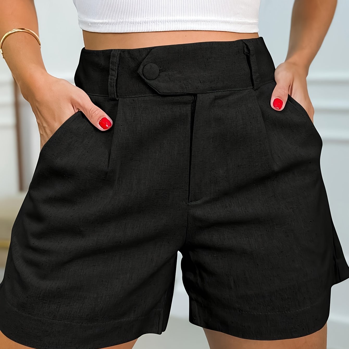 TEMU 여성용 솔리드 컬러 쇼츠 - 커뮤터 쇼츠 + 탈라