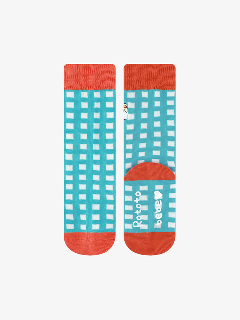 [로토토베베] 체크 배색 포인트 삭스 스카이블루