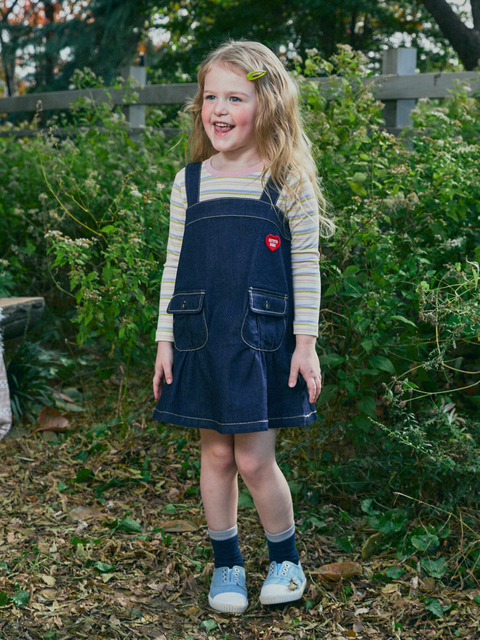 [로토토베베] 데님 포켓 멜빵 원피스 진청