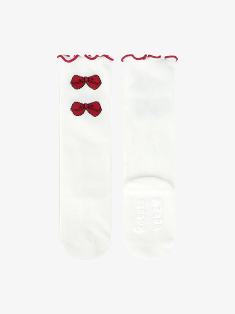 [로토토베베] 골지 리본포인트 프릴 삭스 화이트