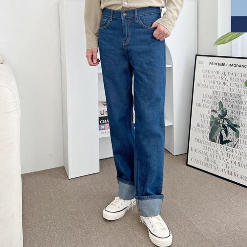 블루독 스튜디오 [블루독](DD)세미와이드롤업데님팬츠(25C7541403) 25FW겨울상품 기모청바지