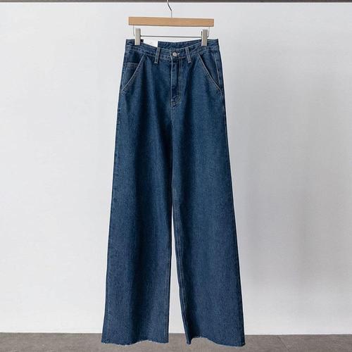 [옷자락] 여성 와이드핏 배색 롤업 데님팬츠