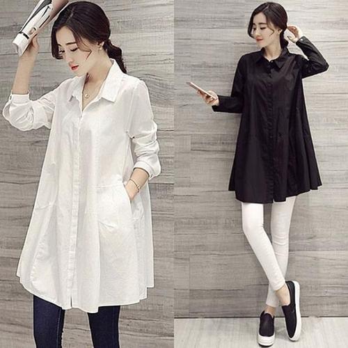 [오너클랜]인기상품 레이어드 셔츠 A라인 흰색 블라우스 롱남방 임부복 [WB6FCA2_250930]