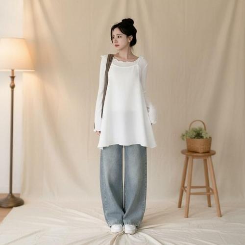 퍼스트클로 레이어드 롱 나시 티셔츠
