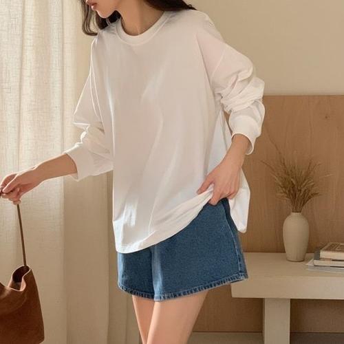 데일리 여성 긴팔 티셔츠 면 모달 롱 슬리브 라운드넥 의류 이너 흰티 여성면 여성봄