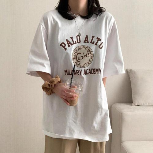 [유야]여성 면 레터링 반팔 롱 티셔츠 박스티 -FTS1076- 여름