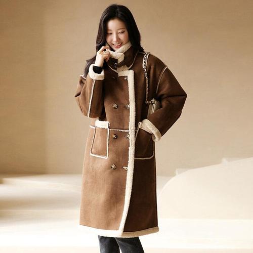 테디 리버시블 양면 양털 뽀글이 페이크 스웨이드 무스탕 롱 겨울코트