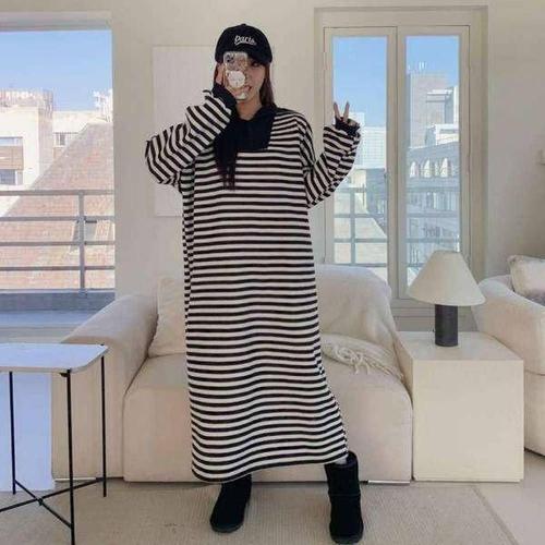 데일로엔 여성용 데일리 심플 롱 셔츠 원피스