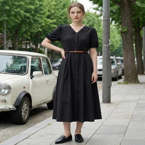 카라원피스 여성 린넨 롱 반팔 셔츠 원피스 시원한 여름 데일리룩