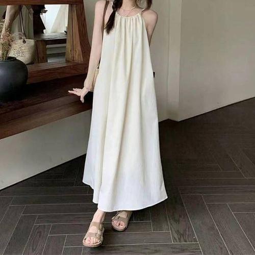 [에이치플러스몰]휴양지 롱니트 쉬폰 롱 스트랩 셔츠 원피스 여