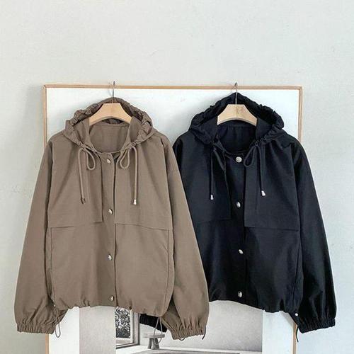 [신상오픈런]여성 빅사이즈 후드 탈부착 스트링 버튼 사파리 롱 점퍼