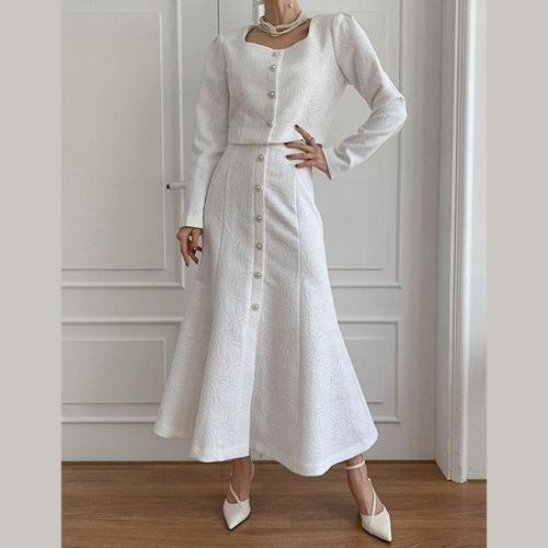 [바이어스]스퀘어넥 자켓 하이웨스트 롱 스커트 투피스 세트 룩 (12520416A)