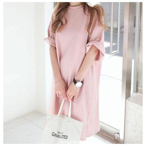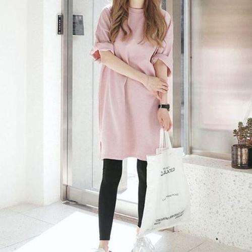 [에이치플러스몰]여성루즈핏반팔티 1P 여자 롤업 롱 원피스 티셔츠