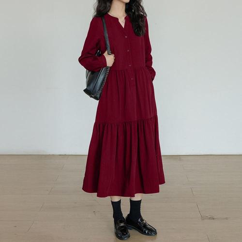 MUMUM 넉넉한 빅사이즈 롱 원피스 가을 봄 간절기 긴팔원피스 5XL까지