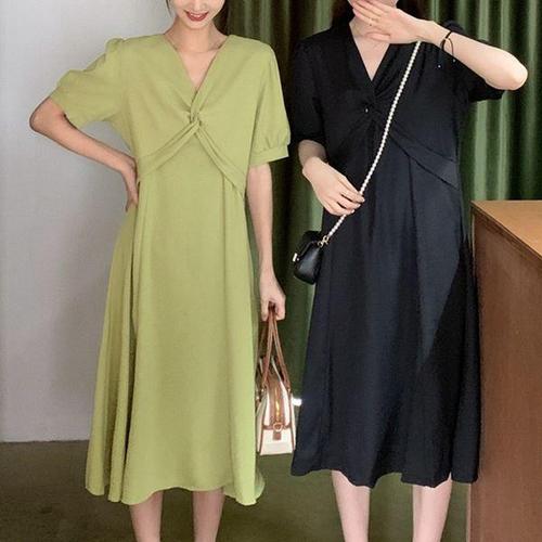 스테파니 HC07 V넥 7부소매 아가티 롱 원피스 A25SO5201