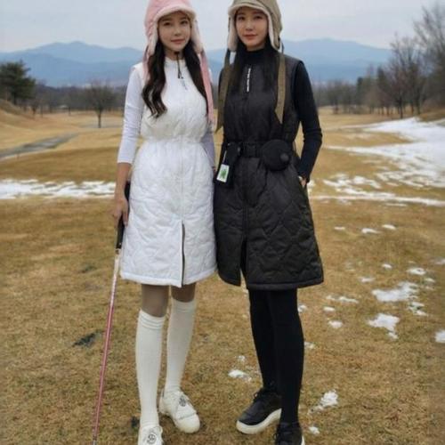 [원온골프]원온기모패딩원피스 여성골프조끼 겨울 패딩롱원피스