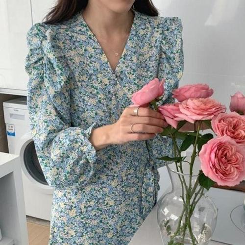 이쁘다요 꽃무늬 가을 긴팔 잔꽃 원피스 봄 플라워 롱 리본 WFLMET6