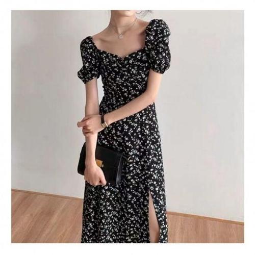에쥬아 스퀘어넥 롱원피스 퍼프소매 노란장미 반팔원피스 예쁜 꽃무늬 A라인 여름원피스