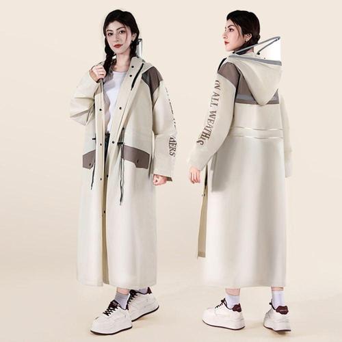 LINSHU 롱코트 등산 도보 패션 우비 다용도 루즈핏 순색 골프 방수레인코트
