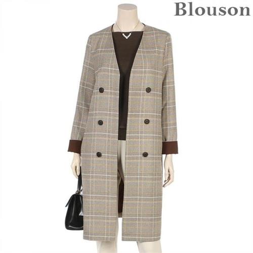 [블루종]노카라 더블버튼 배색 롱자켓_B2009JK058C