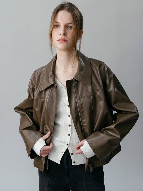 [루에브르] V-neck Faux Leather Blouson Jacket SL6SM604-10