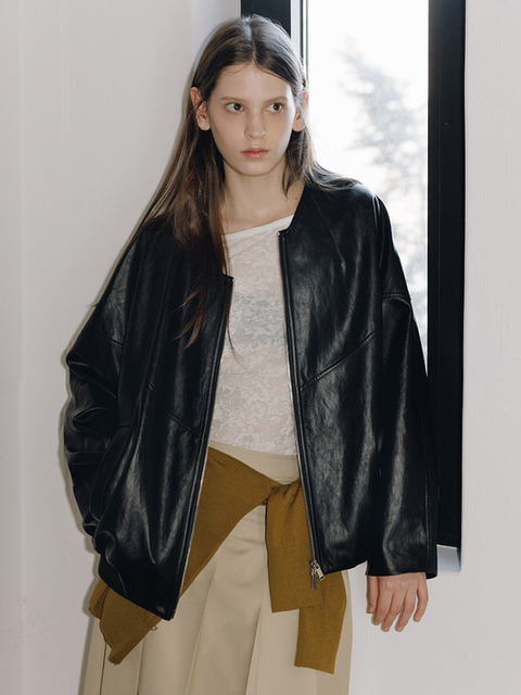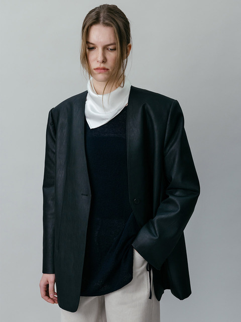 [루에브르] Collarless Faux Leather Jacket SL6SJ620-10