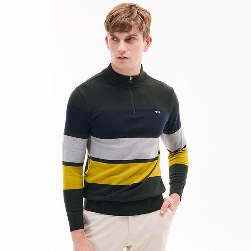 [루이까스텔]남성 민자 스트라이프 반집업 스웨터
