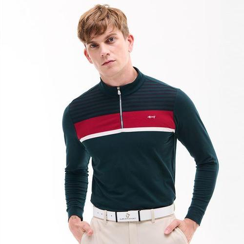 [루이까스텔]남성 컬러 블록 방풍 하프 집업 스웨터