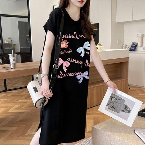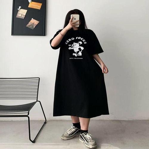 ONM 오버핏 캐주얼 캐릭터 롱 반팔 원피스