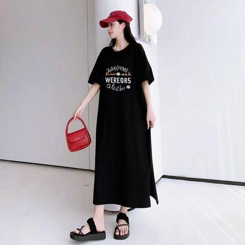 ONM 블랙원피스 영문레터링 편한 오버핏 반팔 롱원피스