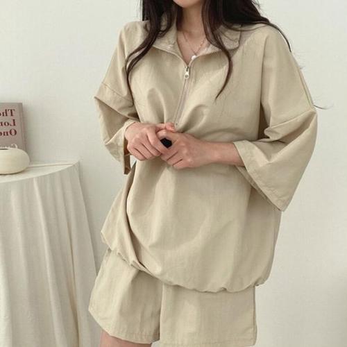 [오너클랜]인기상품 여자 반집업 반바지 아노락 셋업 루즈핏 무지 홈웨어 [WC7BE5B_250919]