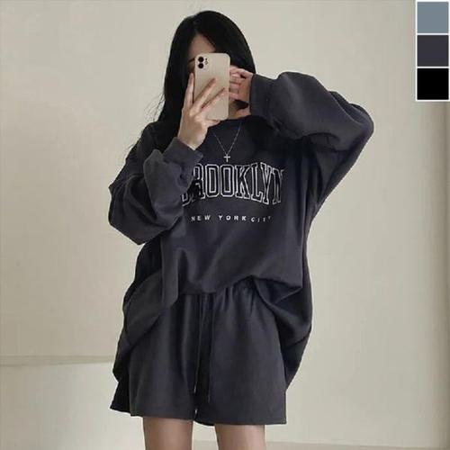 [오너클랜]인기상품 여자 맨투맨 반바지 셋업 1P 간절기 오버핏 세트 [WCC8561_250917]