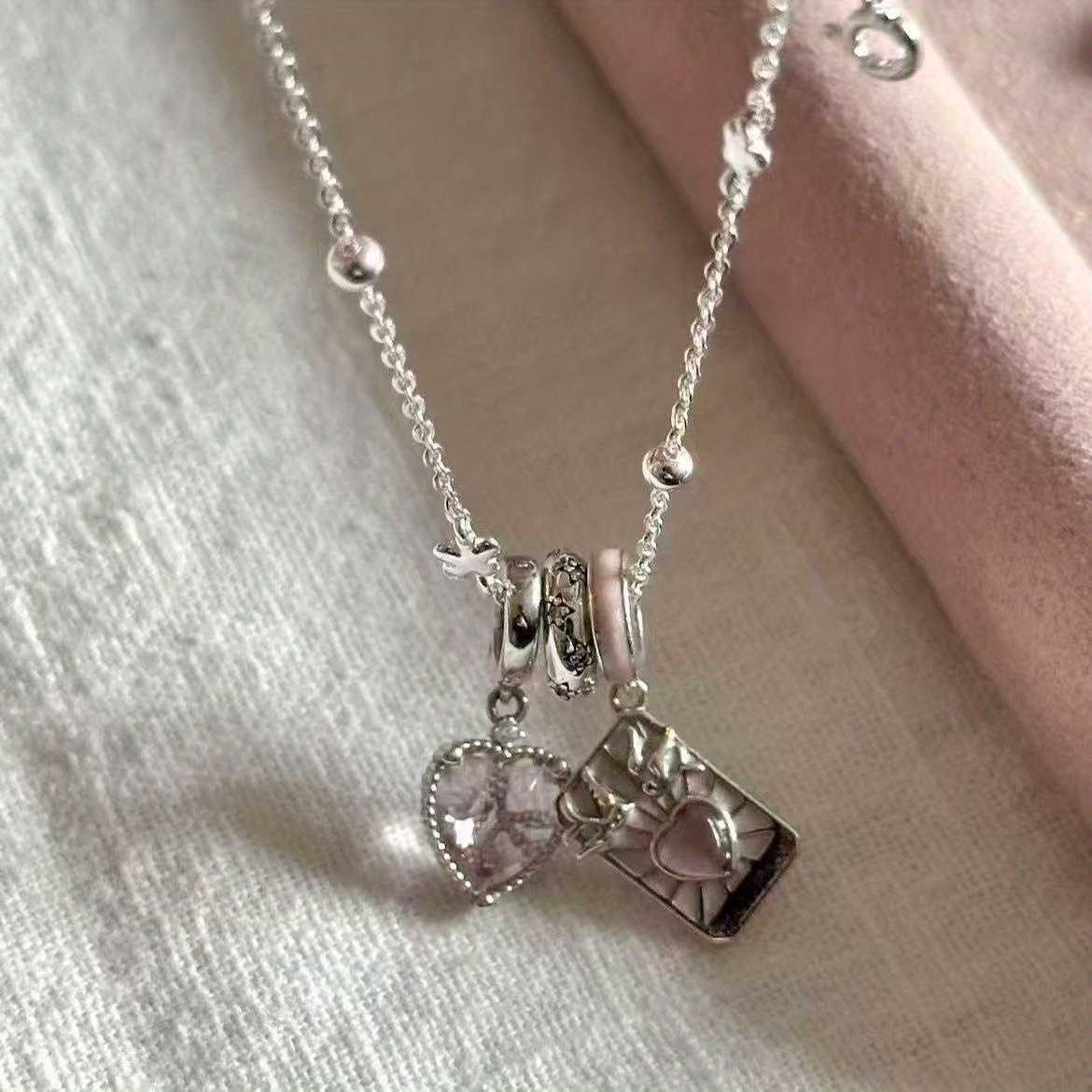 TEMU 여성용 러브 카드 펜던트 목걸이 - 로맨틱 카드 홀더, 데일리 웨어 & 선물용 무코팅 칼라본 체인, 생일/기념일 카드를 위한 우아한 액세서리 (도금 없음)