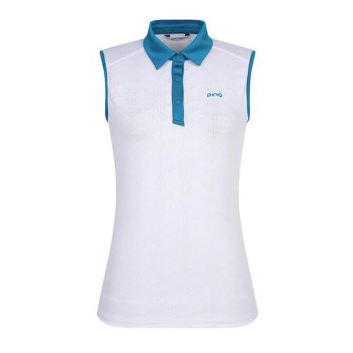 [핑]여성 배색 자가드 카라 민소매 티셔츠 121C2TO071