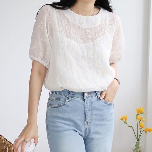 펜디 FF 자카드 레이스 트림 실크 탑 FS9753 AUQGF1T6H