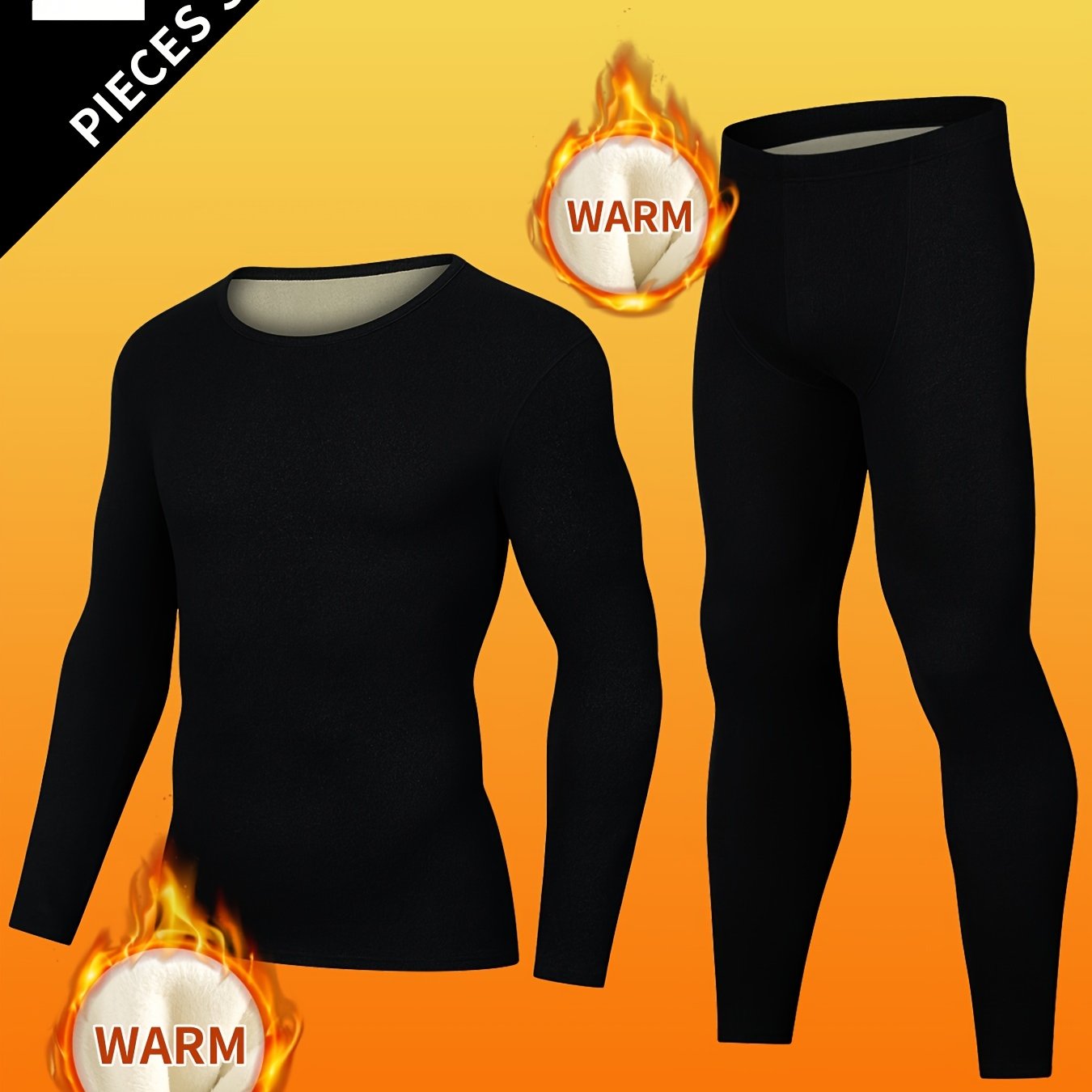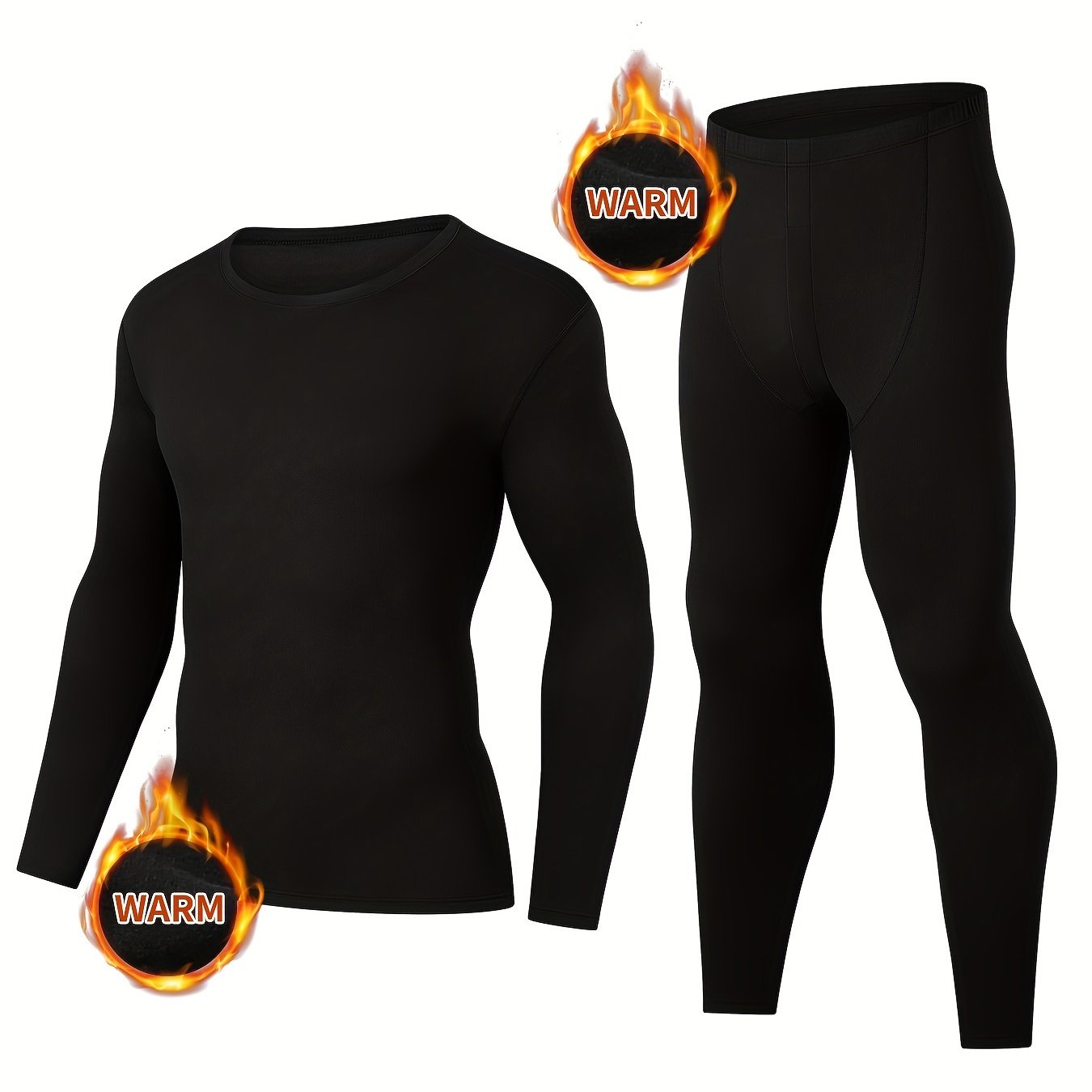 TEMU 남성용 2피스 보온 압축 슈트 - 고탄력 겨울용 긴팔 압축 셔츠 & 타이트핏 팬츠, 스키, 헬스, 야외 활동용 전신 압축웨어 - 솔리드 컬러 운동복 세트 (손세탁 가능)