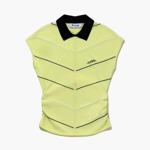 [르꼬끄골프]르꼬끄골프나시 KQF GQ122LKP34-LIME 여성 라인 배색 슬리브리스 카라 스웨터 / LIME