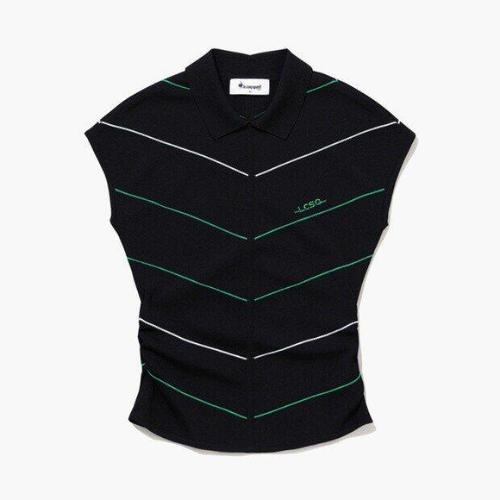 [르꼬끄골프]르꼬끄골프나시 KQF GQ122LKP34-BLCK 여성 라인 배색 슬리브리스 카라 스웨터 / BLCK