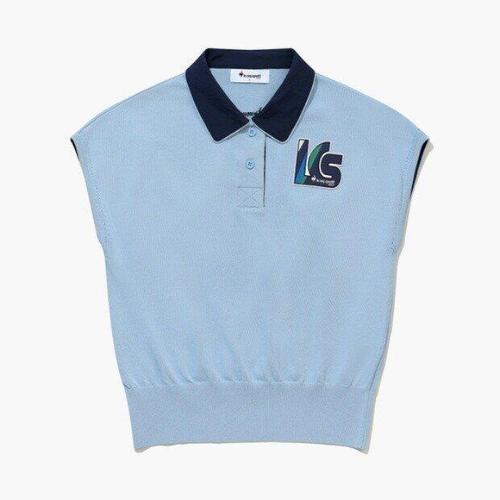 [르꼬끄골프]르꼬끄골프나시 KQF GQ122LKP36-BBBL 여성 우븐 카라 슬리브리스 스웨터 / BRIGHT BLUE