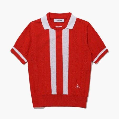 [르꼬끄골프]르꼬끄골프반팔티 KQF GQ122LKP32-VIRE 여성 라인 포인트 반팔 카라 스웨터 / VIVA RED