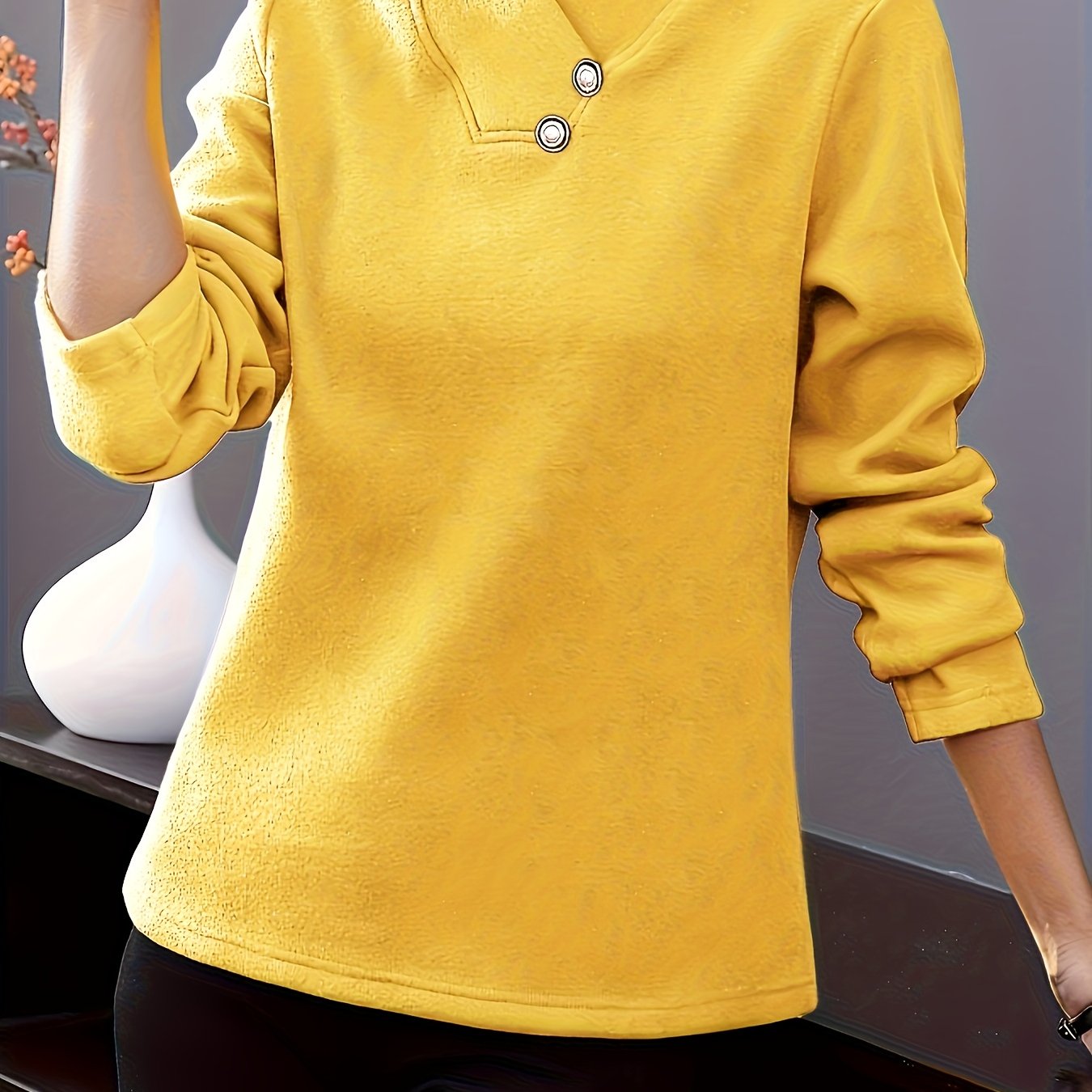 TEMU 중년 여성용 캐주얼 플러시 벨벳 탑 | 스탠드 칼라, 단색, 루즈핏, 가을/겨울에 어울리는 패셔너블하고 스타일리시한 디자인